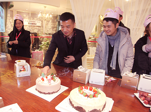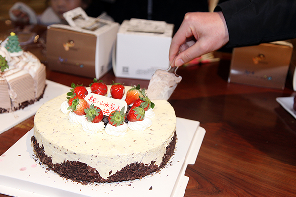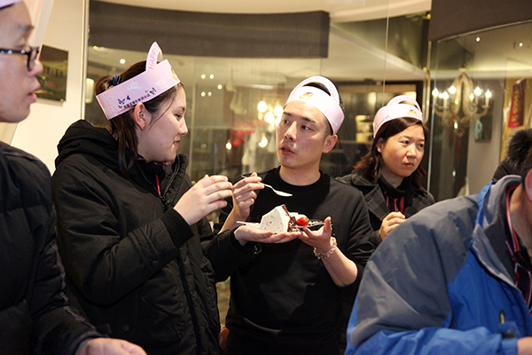 开心的接力切蛋糕