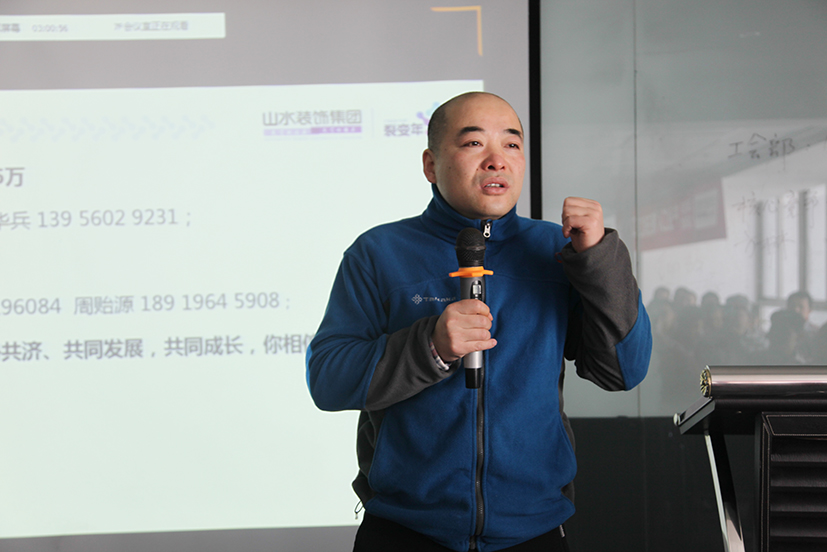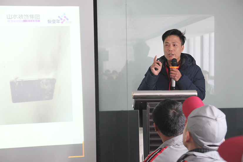 最后,山水装饰集团副总裁卜长怒发表总结讲话,卜总表示,今年召开“新三标工程”培训会,是为了对工人在工作和生活上进行更多的帮助与指导。并且说道,能力决定宽度,一个人有多大能量,公司就给多大空间,山水这个大平台期待着每一位肯努力、肯提升的人绽放耀眼的光芒。