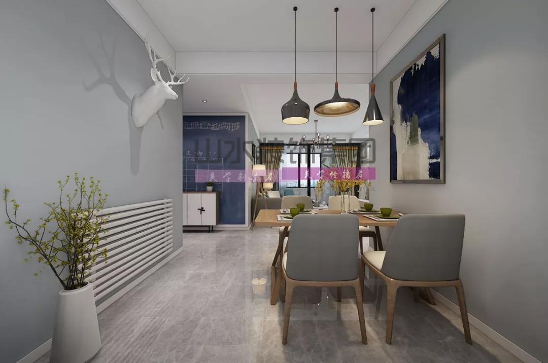共用式餐厅可改动空间不大,但装修风格一定要与厨房或客厅统一,不然整体感觉不协调,失去视觉上的美感。