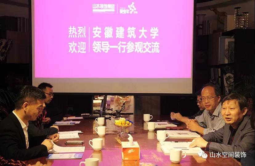 4月23日,安徽建筑大学校党委常委、副校长宋箭率安徽建筑大学一行人参观山水装饰集团。