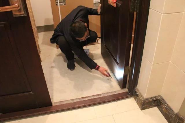 项目经理与业主仔细验收房屋细节,检查门窗、地漏、地暖等,方便后期施工注意事项。