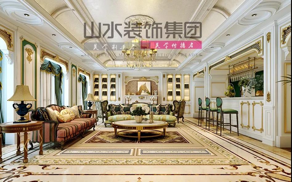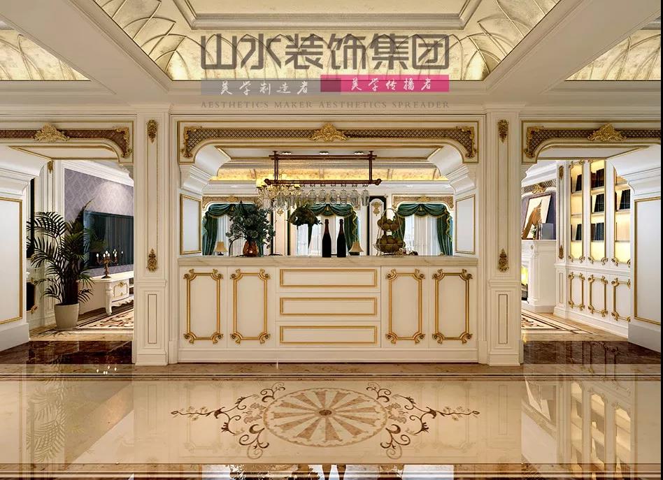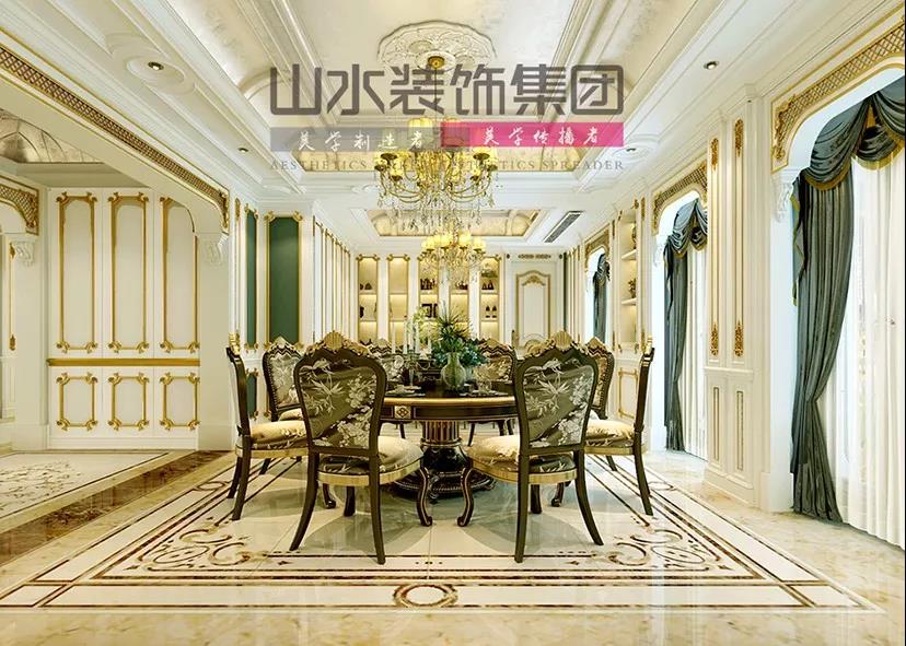 欧奢是吴女士一家喜欢的居住风格。欧奢最大的特点在于造型的华丽,结构的多变,奢华但不庸俗是欧奢的关键词,设计师很好的利用该风格的优势,将空间运用、色彩搭配、软饰搭配做到淋漓尽致,让380㎡的空间看上去既不空洞,也不拥挤。