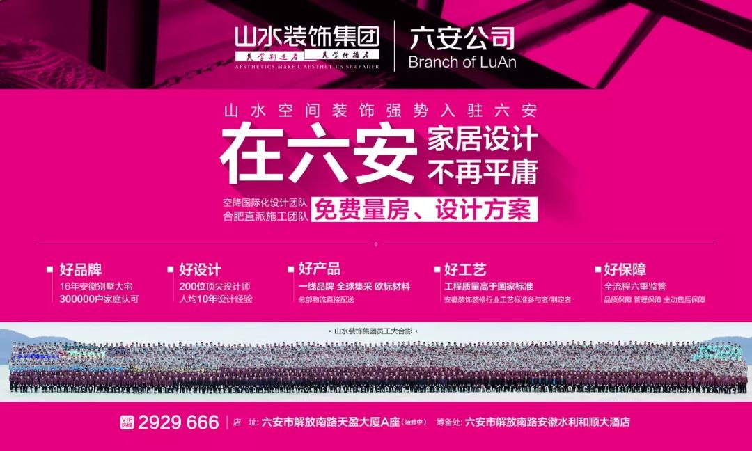 山水装饰集团根植庐州十六载,在安徽装饰行业独树一帜,被评为“安徽省著名商标”,为促进装饰行业的健康发展起了模范带头作用。2018年集团裂变启航,率先在六安、阜阳开设分公司,是集团2014—2018五年战略规划,不仅扩大了集团规模,提升集团综合实力;更为地市级市场消费者提供高品质家装服务;为地市级家装市场培育和输送专业人才;带动安徽家装行业水平的整体提升进步。
