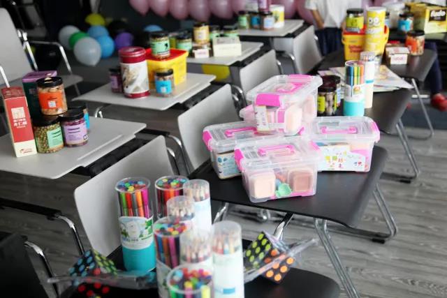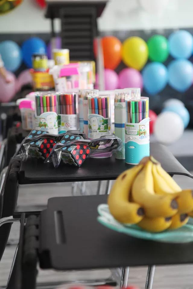 贴满了六一气球、堆满了礼物和孩子们最爱的小零食