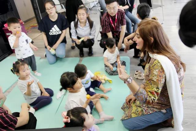 * 外教老师SHU在教0-3岁小朋友从ABC学起,边学边唱,在旋律中将字母记住。