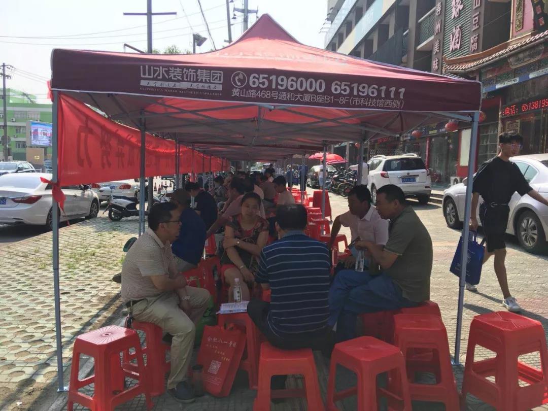 孩子奔赴考场,家长就是背后最坚实的后盾。六月的太阳,热辣程度初显,长达两个多小时的考试时间,家长都坚守在考场门口,焦急等待考试的结束。山水装饰集团党支部准备了二十个遮阳帐篷、300只板凳和饮用水,为辛苦等待的家长挥走烈日的烦恼。