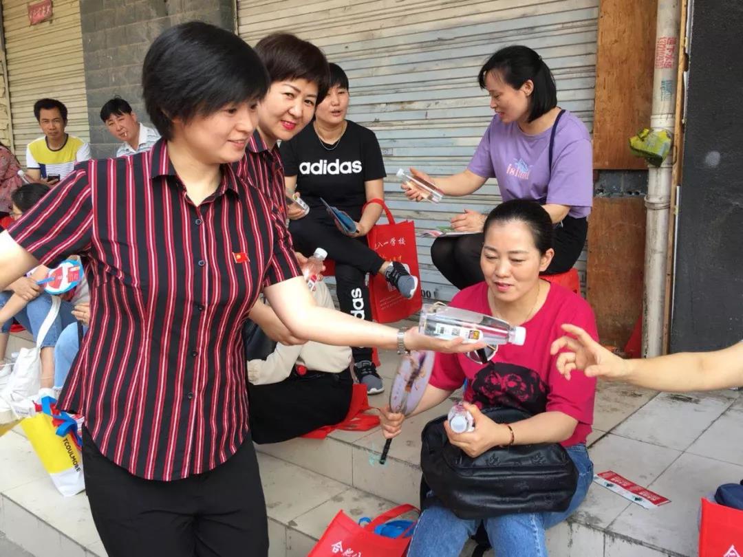 山水党支部志愿队为家长送上饮用水