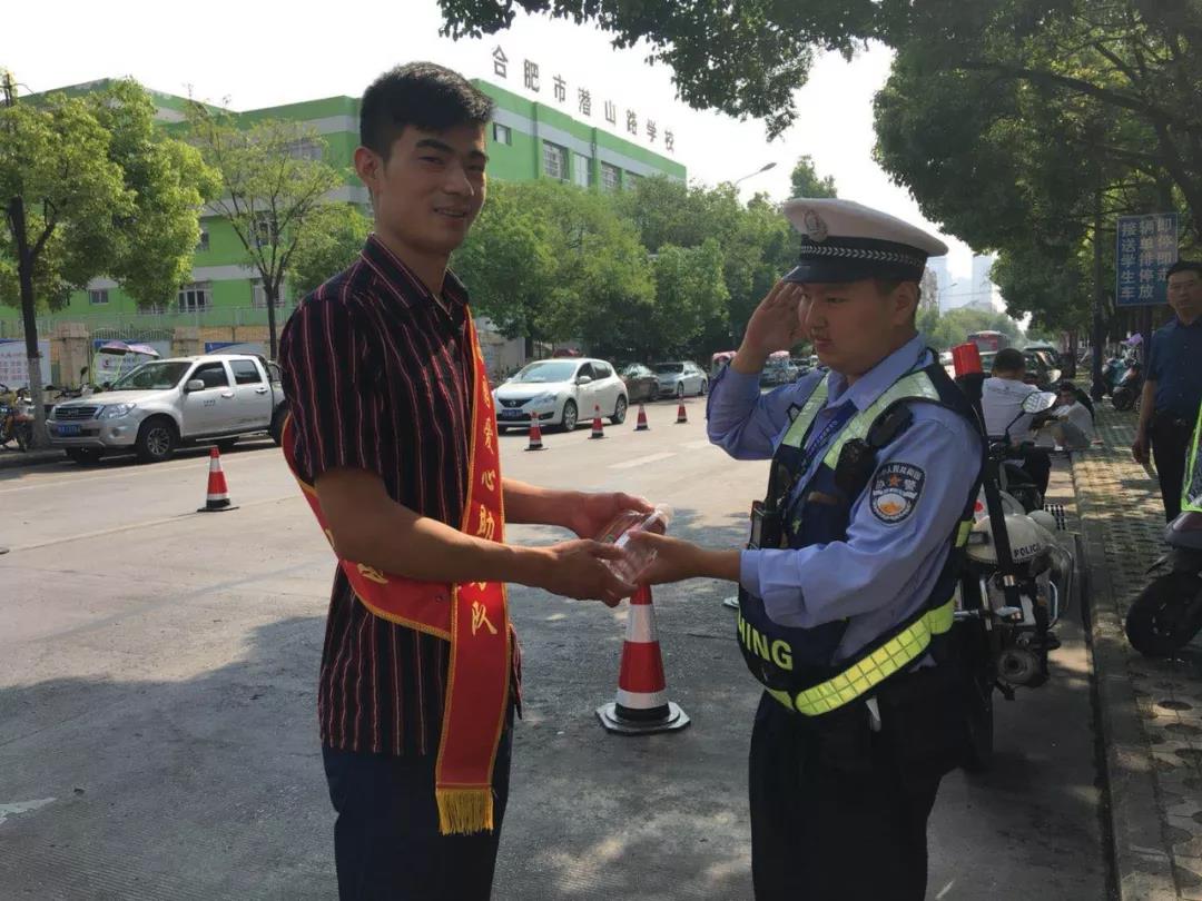 党支部志愿队为辛苦的交警同志送上饮用水